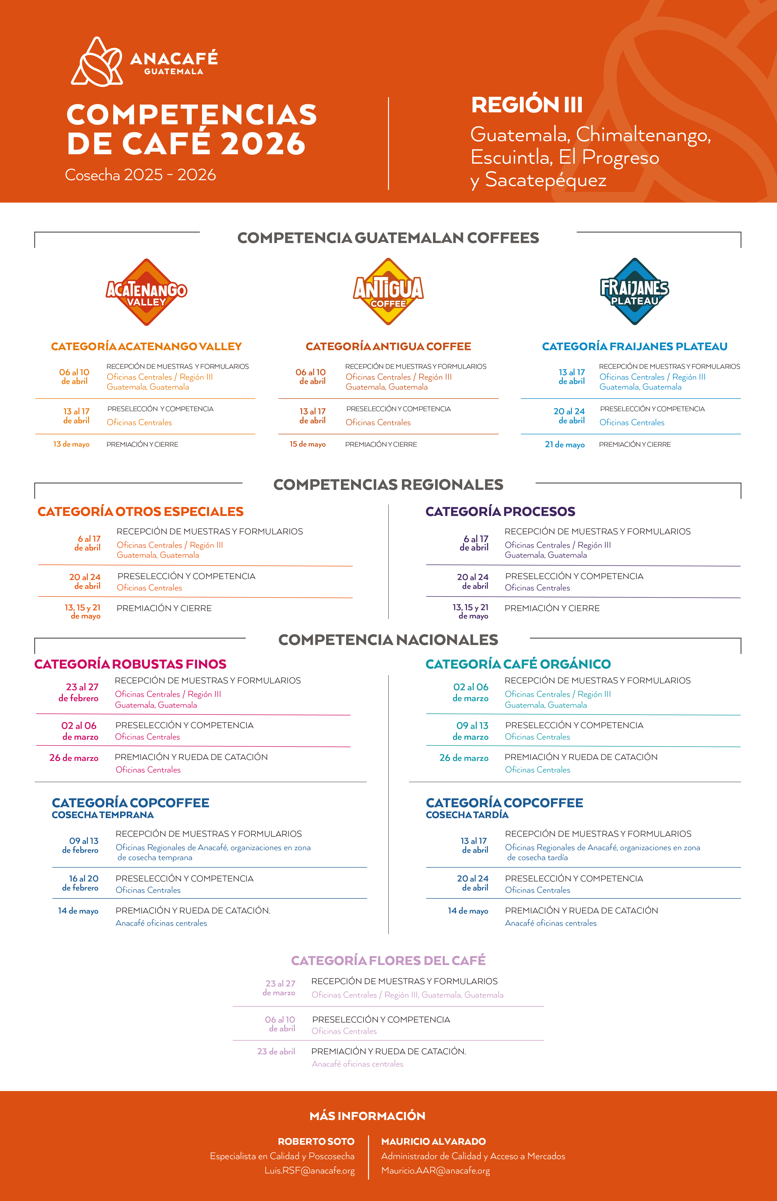 Anacafé realiza cada año las Competencias de Café con el objetivo de premiar el esfuerzo de los productores de café de calidad. A continuación, encontrará la información detallada de cada competencia para su región: