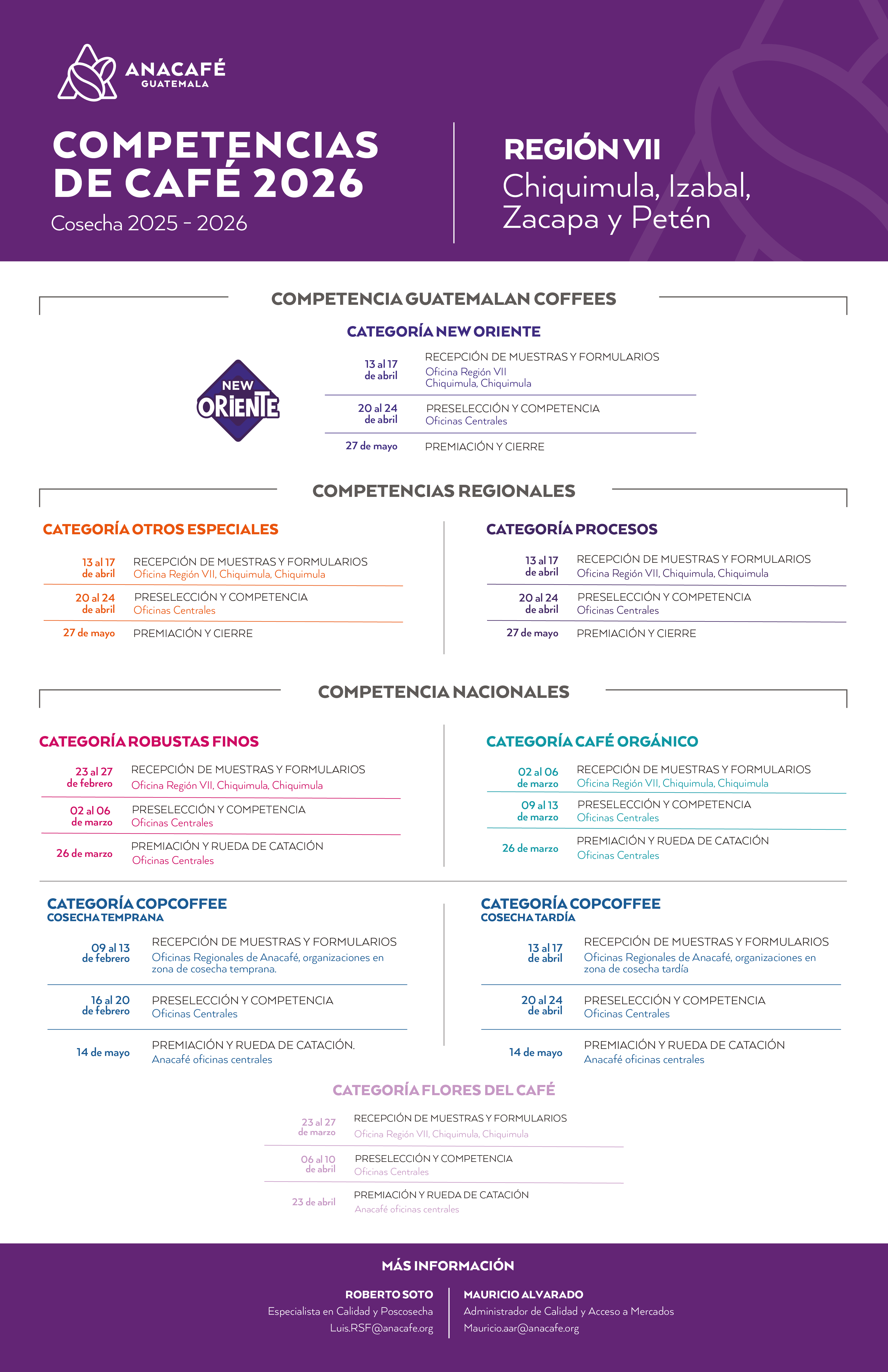 Anacafé realiza cada año las Competencias de Café con el objetivo de premiar el esfuerzo de los productores de café de calidad. A continuación, encontrará la información detallada de cada competencia para su región: